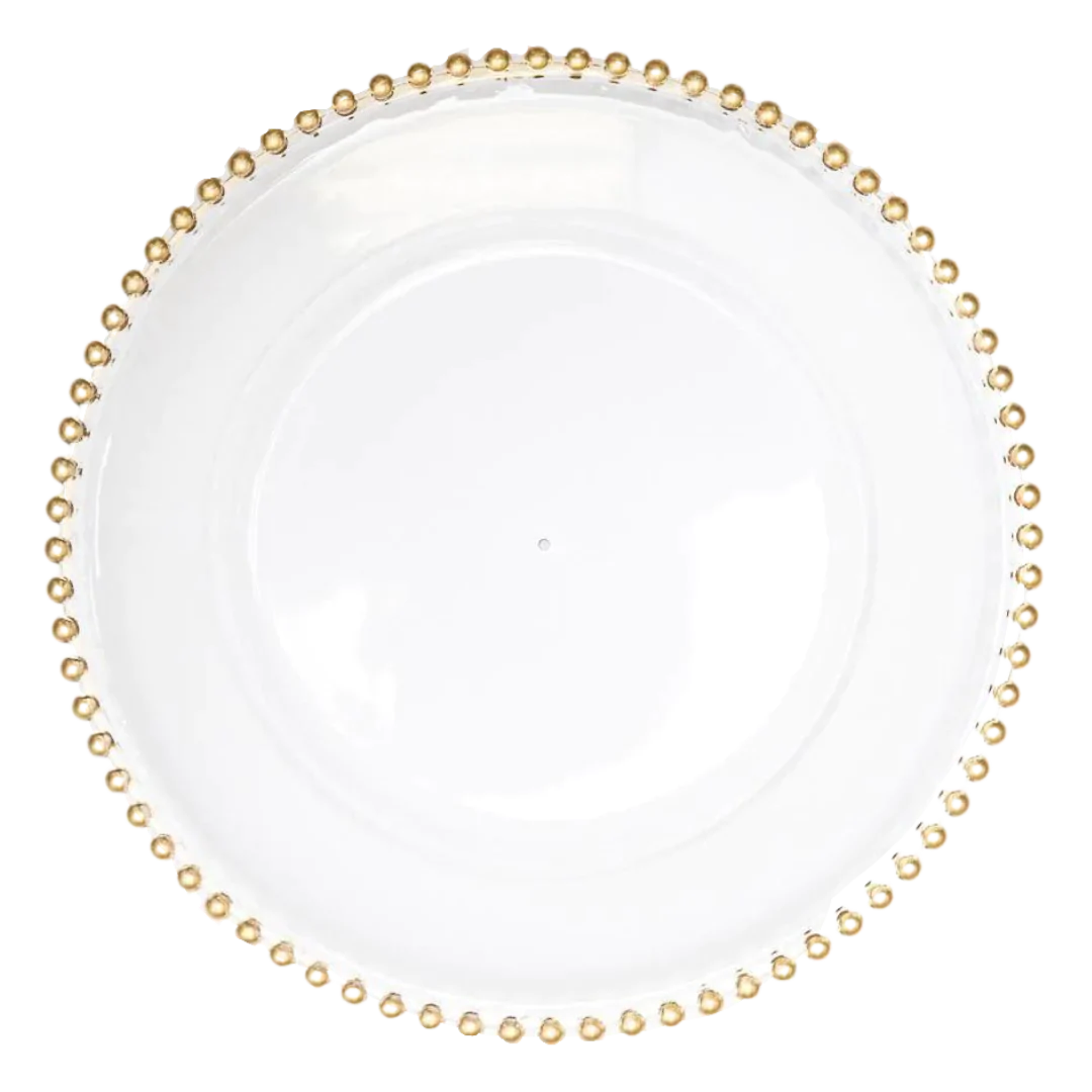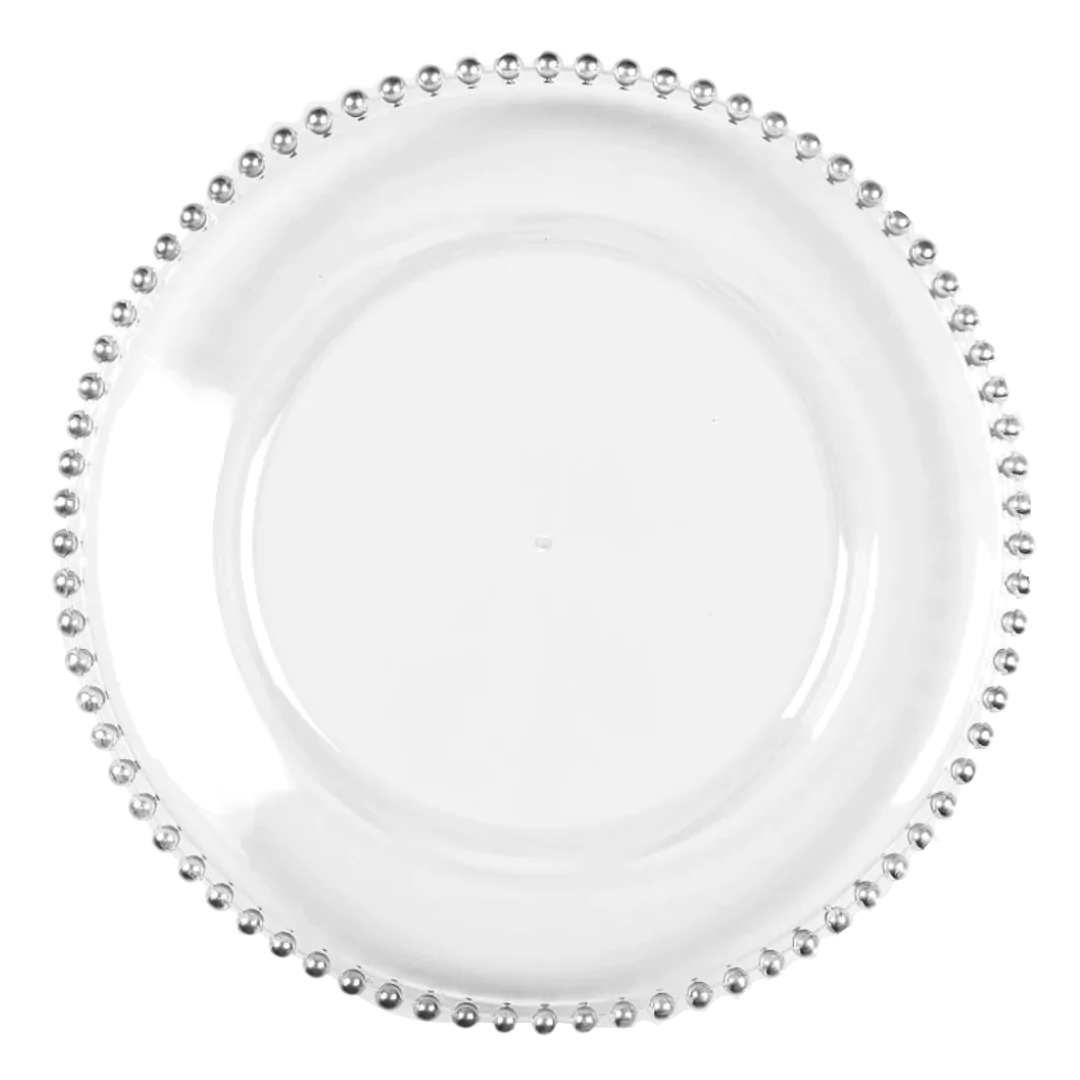 Our 13" beaded charger plate upgrades the look of any table elegantly. Charger plates function as an aesthetic resting place onto which food-bearing dishes and bowls are placed.
